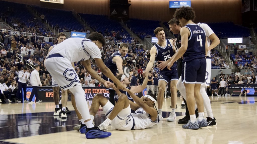However, that rhythm stalled as missed shots and fouls allowed Liberty to respond. Harper, guard Kaden Metheny and guard Colin Porter each found the net from outside the paint, fueling an 11-0 run that gave Liberty a 51-50 lead — their first of the half.