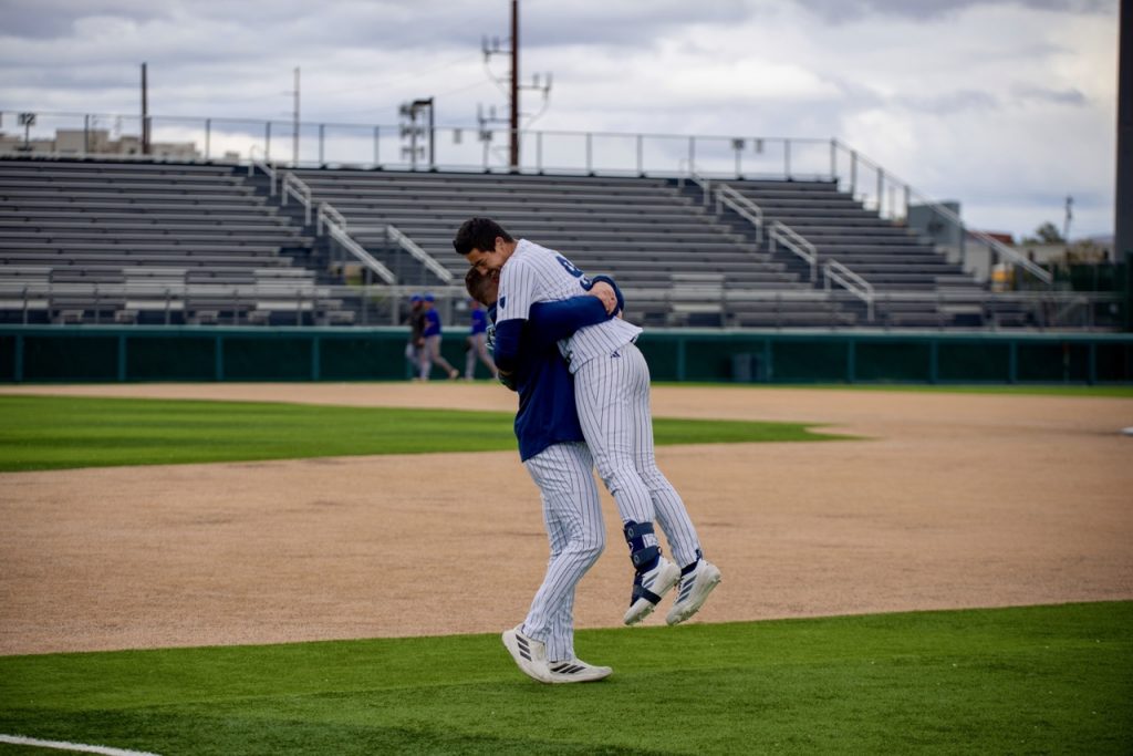 Dobie, pitcher/utility, delivered a three-run walk-off home run to seal the 5-4 victory for the Wolf Pack.