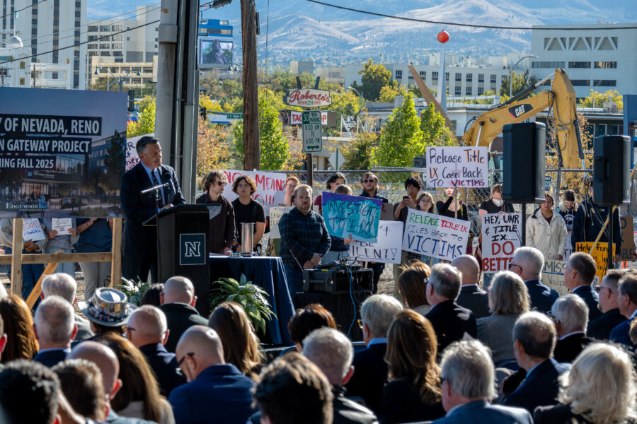 News Protestors drown out new business building groundbreaking in support of Feifei Fan Zoe Malen / Nevada SagebrushBrian Sandoval, UNR president, speaks on stage at the Mathewson Gateway…Jaedyn Young and Emerson DrewesOctober 12, 2023