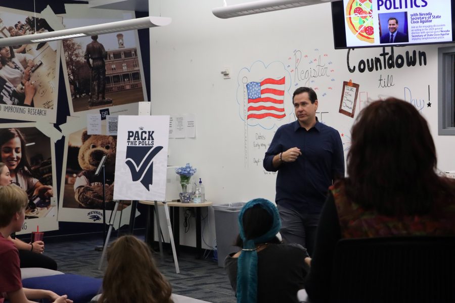 News Nevada Secretary of State Stops by the Joe Francisco, “Cisco” Aguilar, Nevada’s Secretary of State, visited the University of Nevada, Reno on Sept.…Wade WidmannOctober 10, 2024